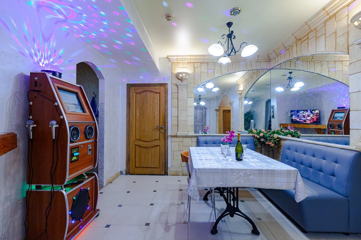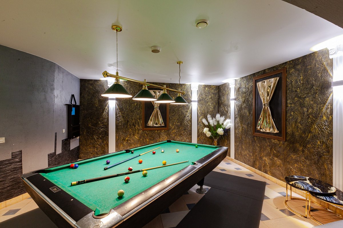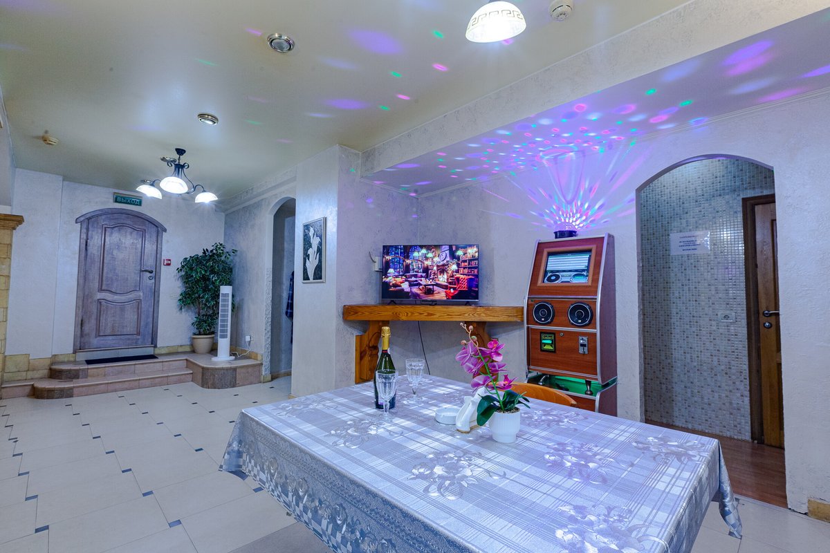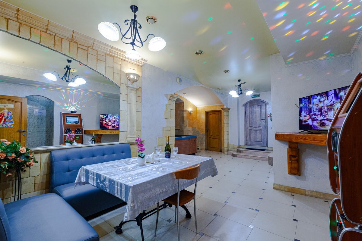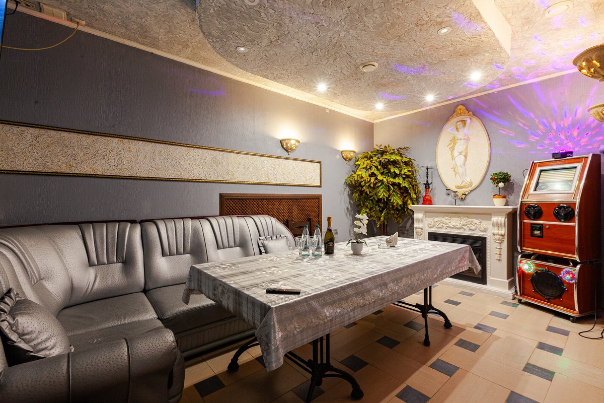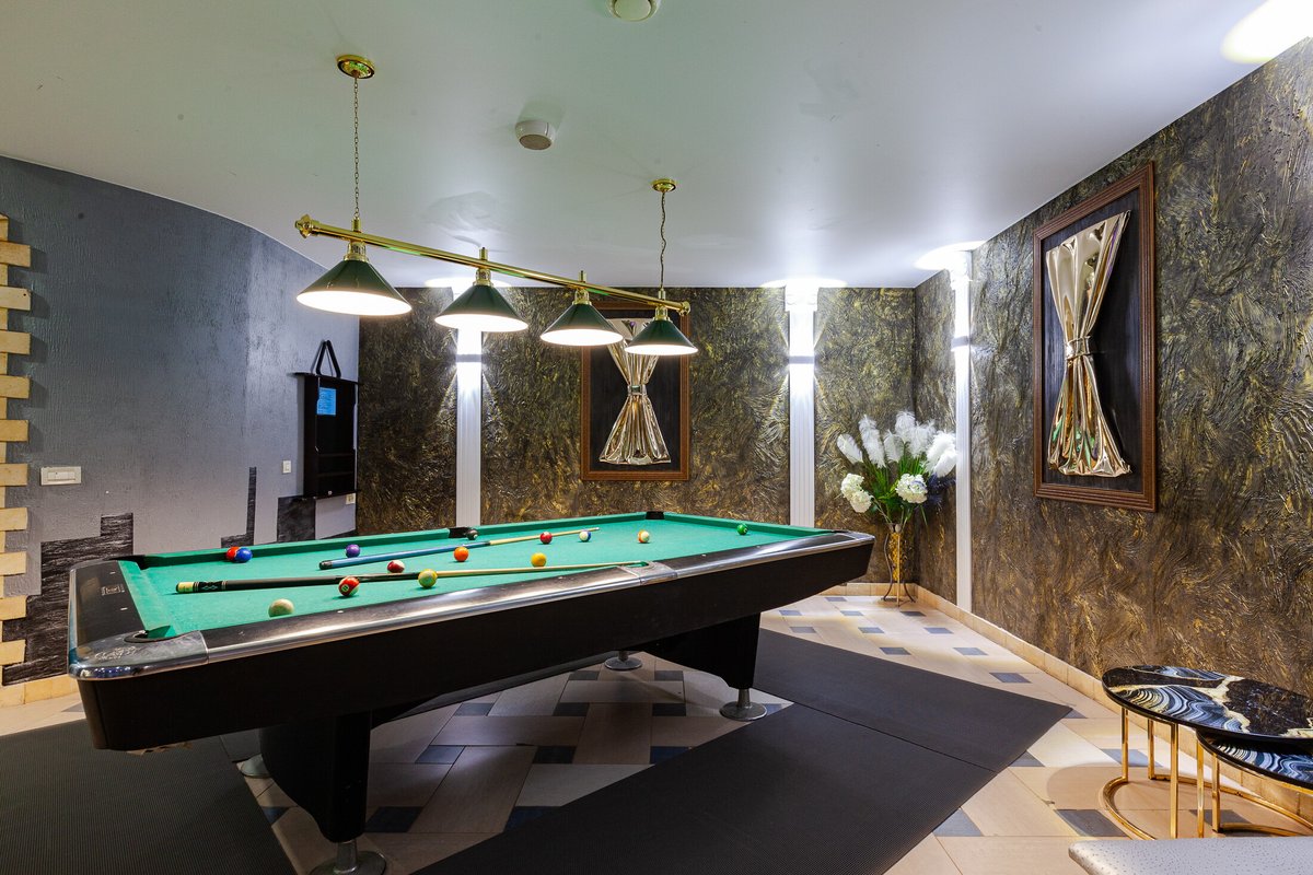 Не хочется в бассейн? Не проблема! Вместо этого можно передохнуть в нашей комнате отдыха. Мы постарались создать здесь комфортный, стильный интерьер из максимально натуральных, экологичных материалов, выбрать мебель, которая будет одновременно удобной и эстетичной. Надеемся, что вам понравится! Для создания настроения у нас есть бильярд, камин и караоке. Также у нас работает бар, где вы можете заказать блюда русской кухни, а если нужно, принести и собственную еду - мы не против! Только не забывайте, что плотная трапеза непосредственно перед посещением парной - это не самая хорошая идея, согласно мнению врачей. А вот после парной можно трапезничать смело!